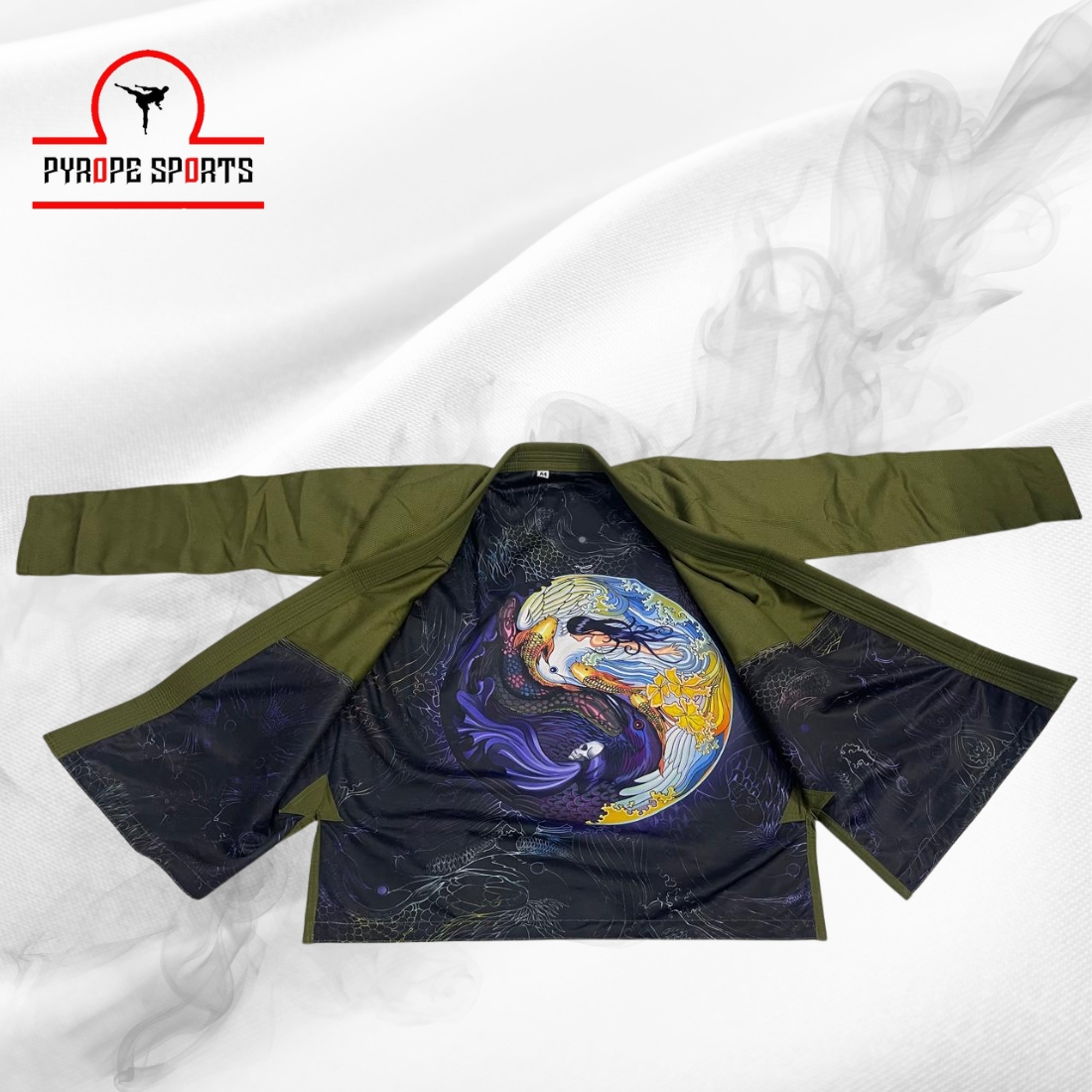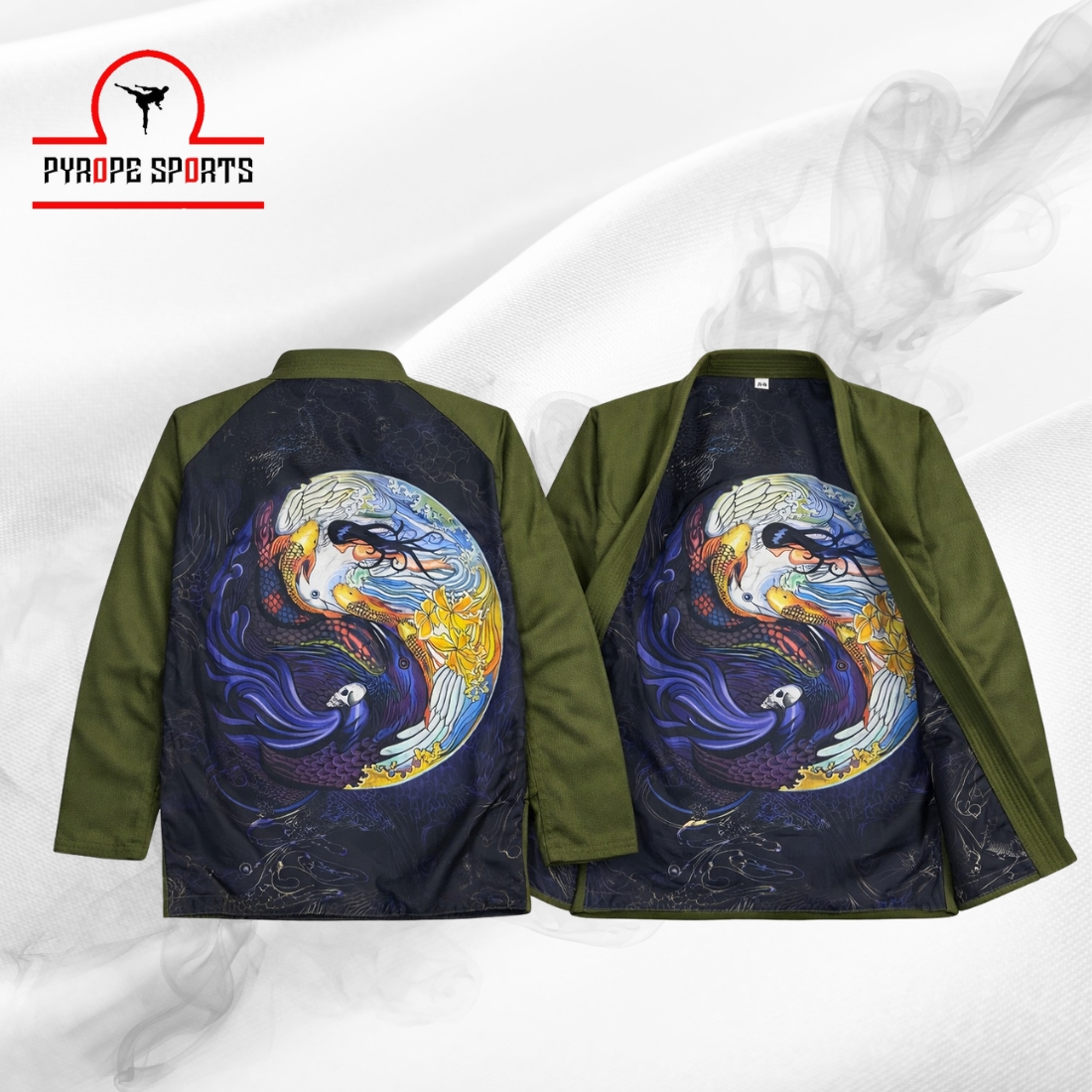 Premium quality BJJ Gi with unique Yin Yang Koi Fish design. Durable, lightweight, and perfect for training & competition. Customization and bulk orders available.