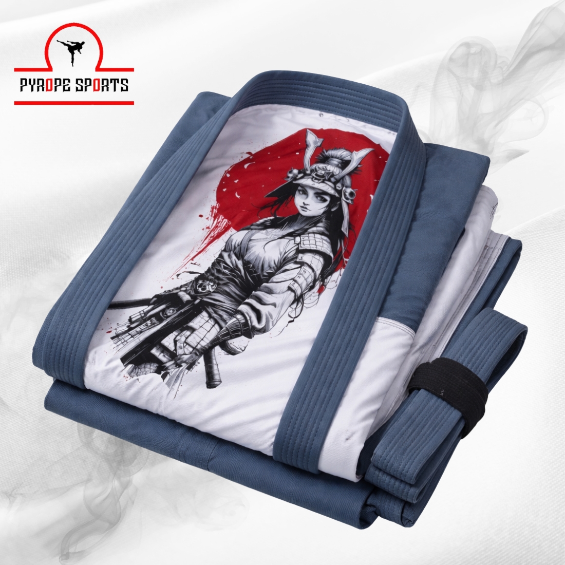 Upgrade your training gear with our Premium Brazilian Jiu Jitsu Gi, featuring an eye-catching Samurai artwork design on the inner panel.
