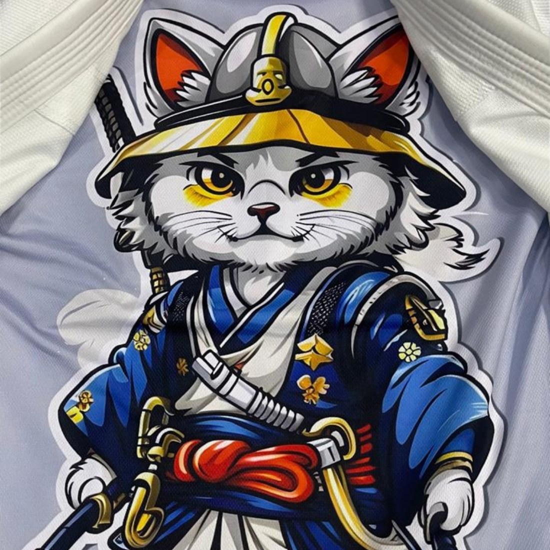 Stand out on the mat with this Samurai Cat Brazilian Jiu Jitsu Gi, a perfect blend of performance and creative design. Featuring a unique anime-style samurai cat artwork, this gi is designed for athletes who want both style and strength in their training gear.